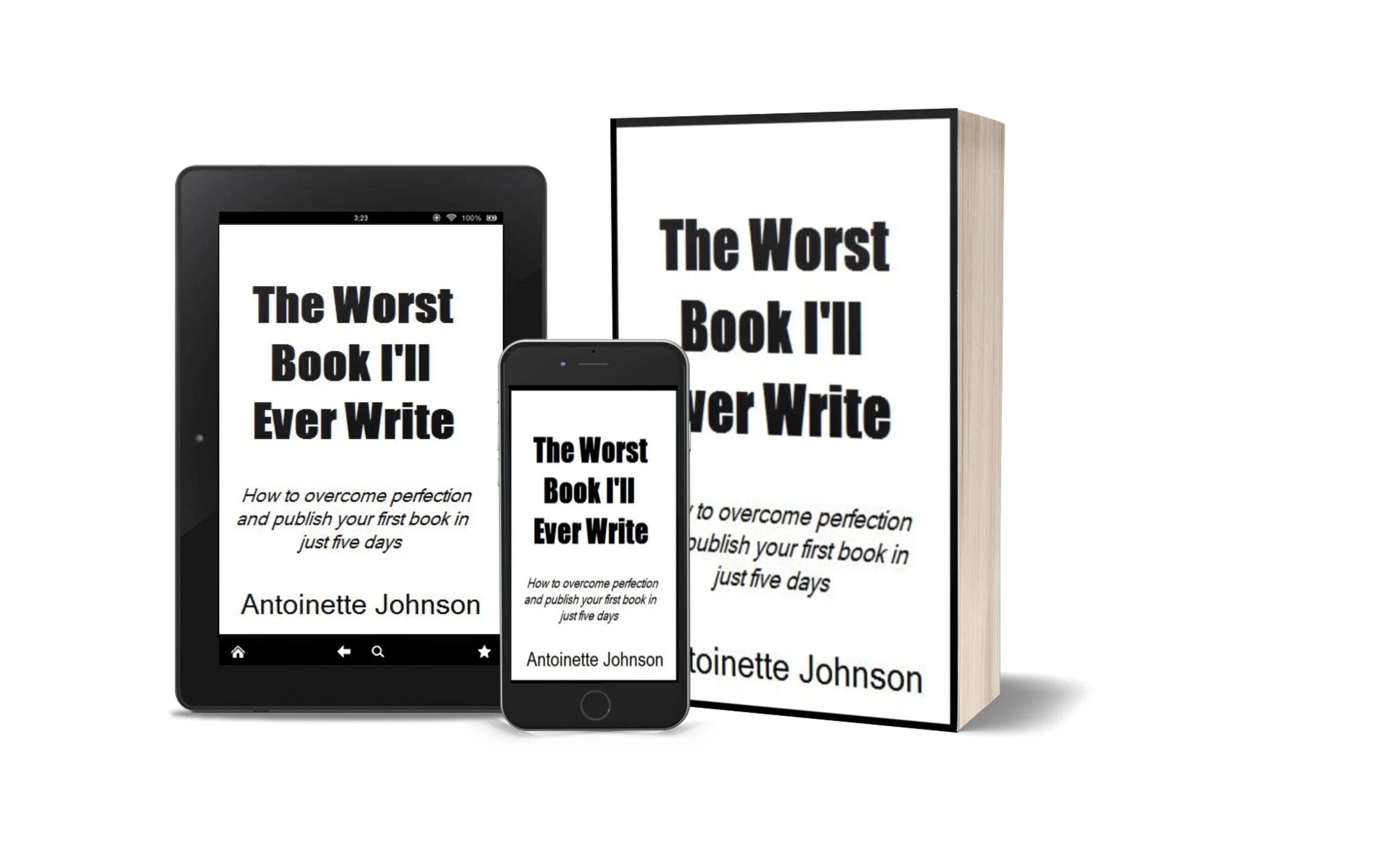 “I love this book. It is not just a motivating book for getting you to write your own first book, it kicks the boulder off your path that has delayed your path to the peak. Self-publishing your first book will now be in sight with the bolder removed. You won’t need excuses to proceed because the what-ifs have all been removed. Four steps to success and no reason to delay any further. Now, read this book and go write your own worst book you will ever write and publish it. … Antoinette Johnson, you should have been very proud of this book. I am very sure you still are. Thank you so much for getting it into my hands”