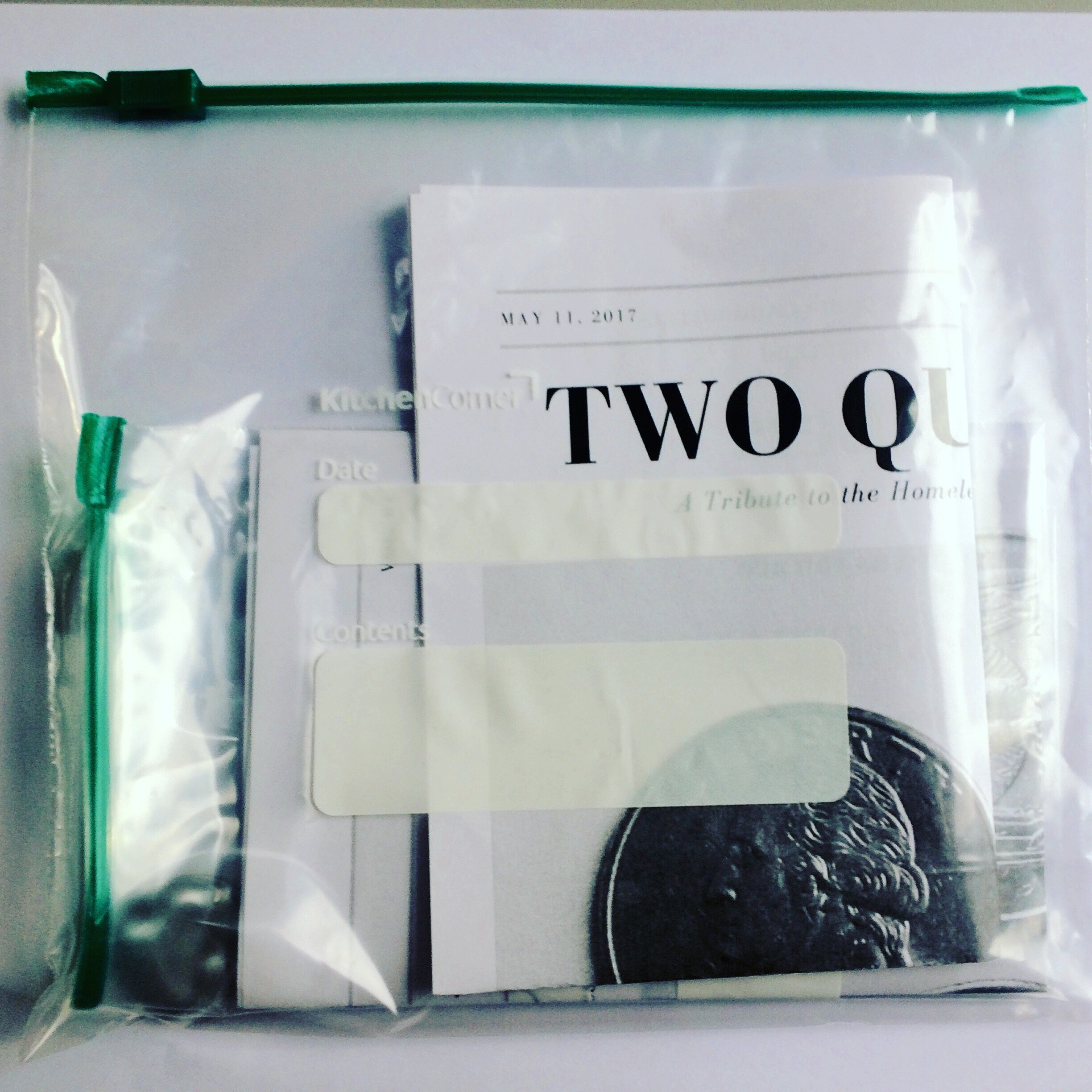 In 2017, back in London, my heart was stirred to get back out on the streets. I decided to create a pack to give out to homeless people, sharing the story of the homeless man I had met in New York City. In the pack, I included a piece of paper and printed the story on one side and encouraging words on the other. I put it in a zip lock bag with two real quarters. I placed another bag inside for them to give to someone else as a way for them to pass on the encouragement.